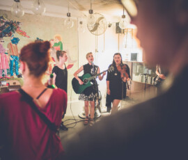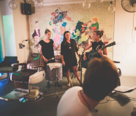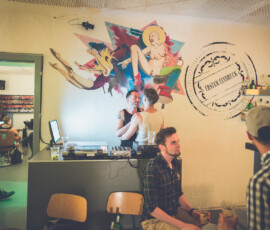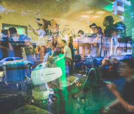 Reportage photo et vidéo du Vernissage de l’exposition réalisé par le photographe Jan Voth, le 13 juin 2015 chez Montoya. Coiffeur. Living. Room, à Berlin. En début de soirée, le groupe Hannah in the Wars jouait le dernier concert de sa tournée en Europe.